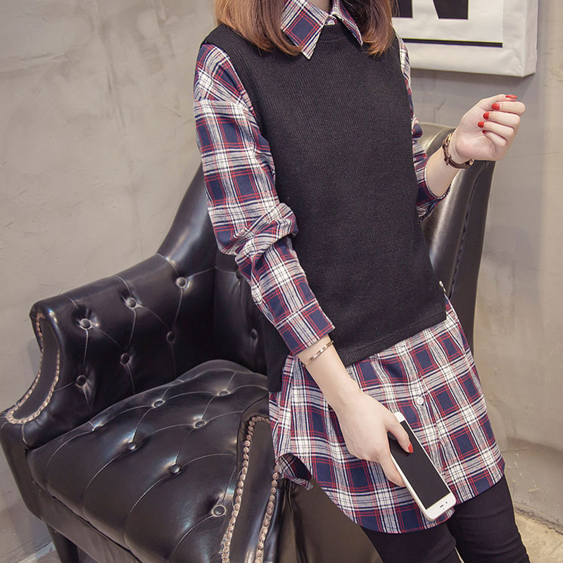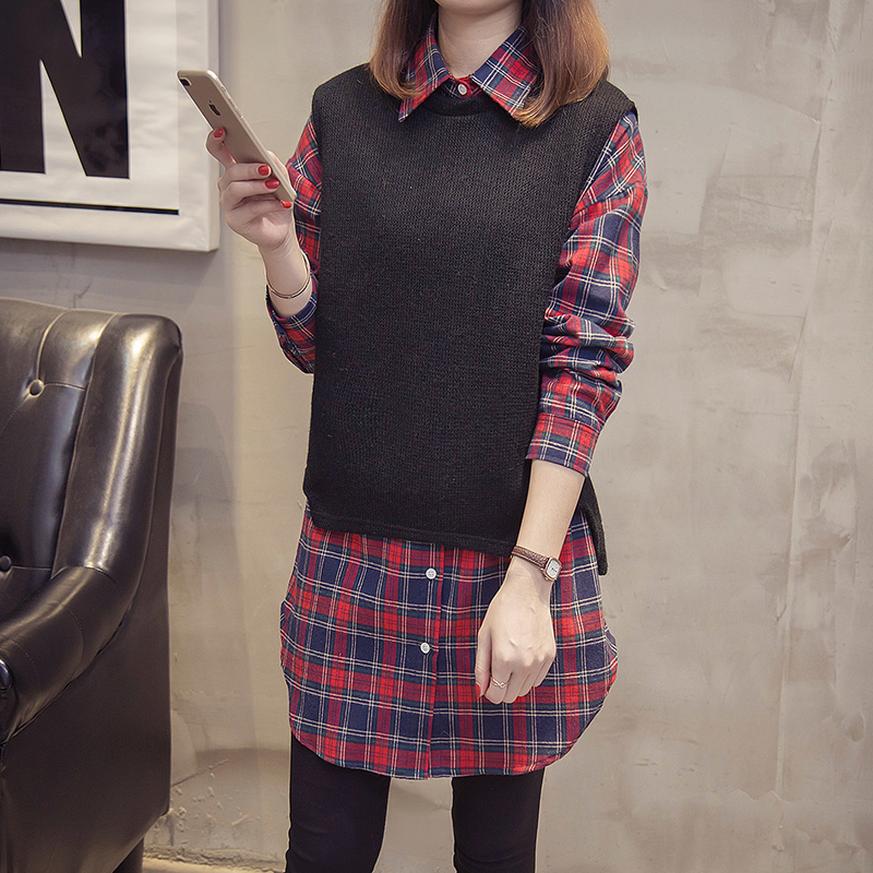 春秋装新款加大码针织马甲毛衣格子衬衫连 ¥119.00 值点 购买