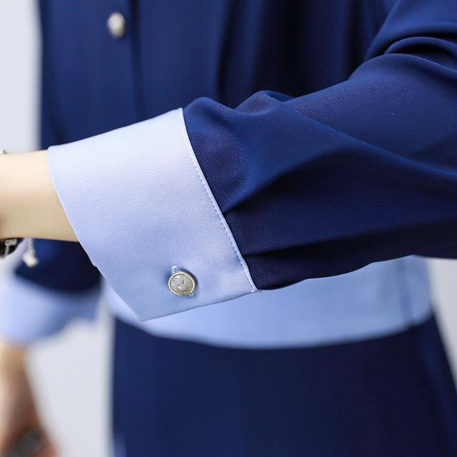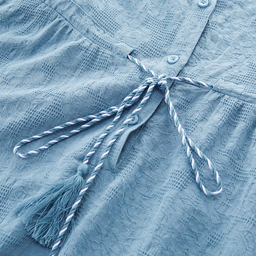 蓝色,是一种颜色,它是红绿蓝光的三原色中的一种颜色,在这三,种原色中它的波,长最短,为440~475n纳米,属于短波长。蓝色是永,恒的代表,它的种类很繁多,每一种蓝色又代表着不同的政治或其他含义,另外以蓝,色命名的音乐、书籍、明星也不乏其例。成熟女人必,备的一款,这衣服刚好穿上美,美哒。非常的有韵味,穿着一点没有紧绷感,任何身,材的女人都可以穿的版型。